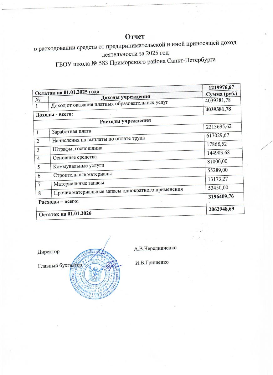 - Положения о расходовании средств от оказания платных образовательных услуг и иной, приносящей доход деятельности ГБОУ школы № 583 Приморского района Санкт-Петербурга