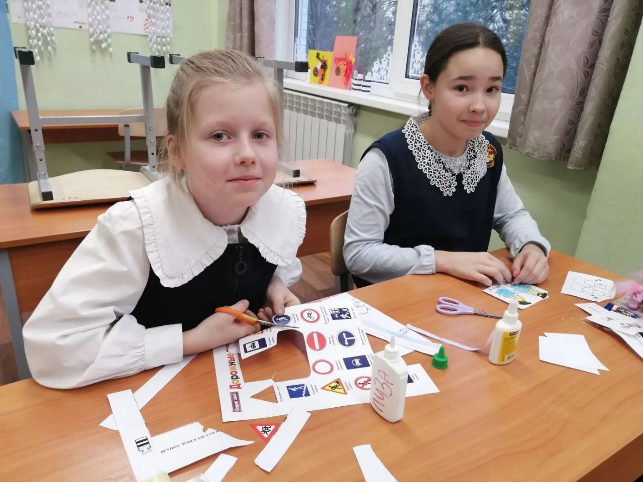Яркие, добрые поздравления увлеченно рисовали все классы, с 1 по 11! Ведь это был общий весёлый праздник!